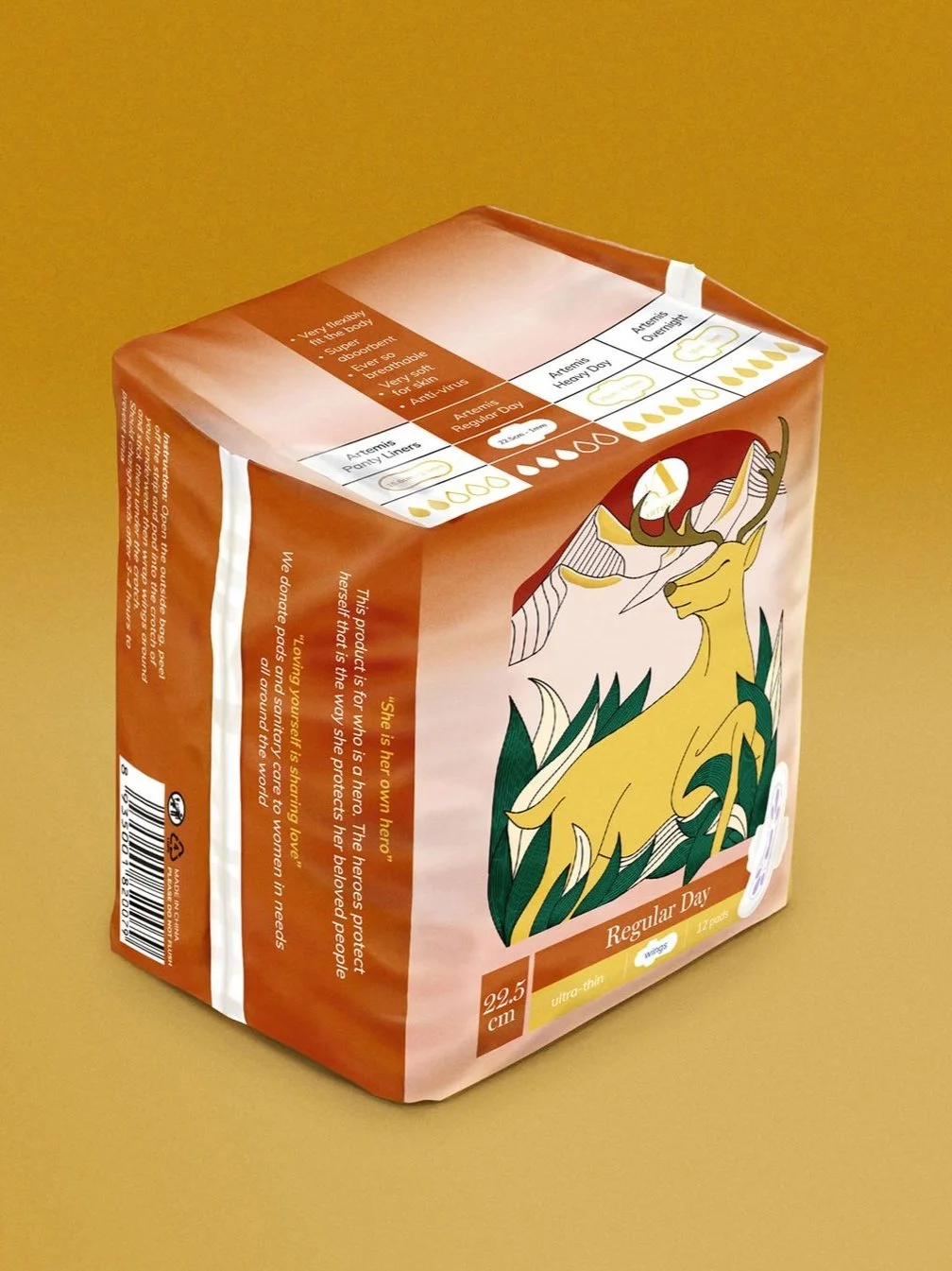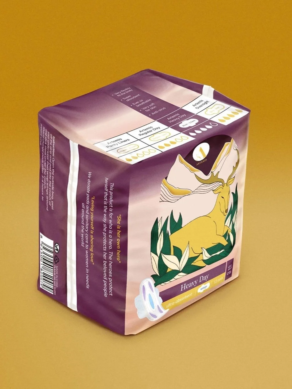 Artemis is a feminist brand producing high quality sanitary pads. As the name implies, Artemis’s mission is to protect women. They donate pads to women in need and educate them in sanitary care.